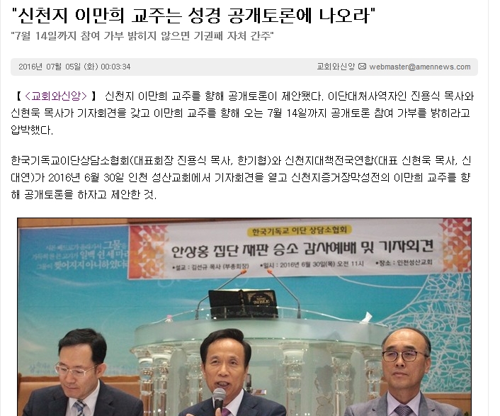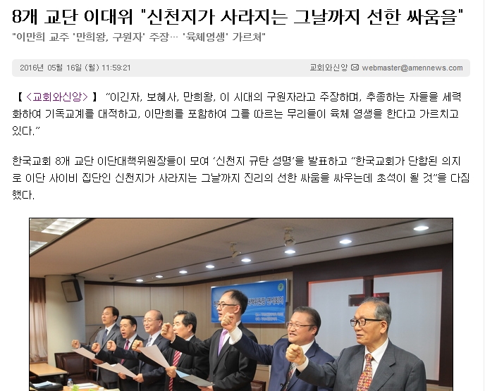 » 신천지 배격 언론기사 자료 file 선지자 2016.10.13