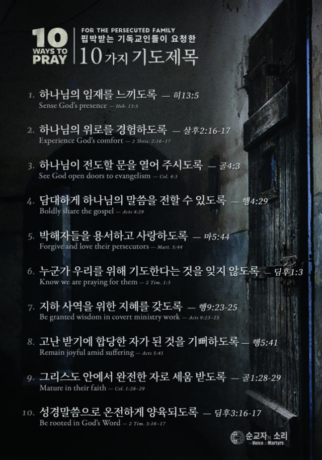 ■ 핍박받는 기독교인들이 요청한 10가지 기도 제목