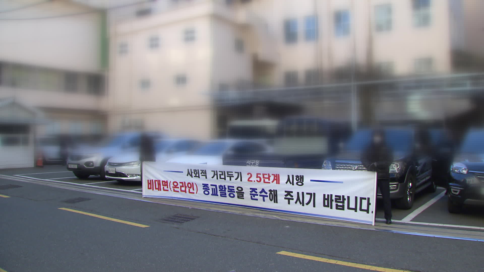 하지만 이들 교회는 관련법이 시행된 지난 30일부터 시작해 주말과 수요일, 새벽 등 잇따라 대면예배를 강행했습니다. 교회발 코로나19 확산세가 산발적으로 지속되고 있어 주민 불안감이 커졌지만, 교회는 대면예배를 멈추지 않았습니다. 대면예배를 멈추게 해달라는 민원도 이어졌습니다.